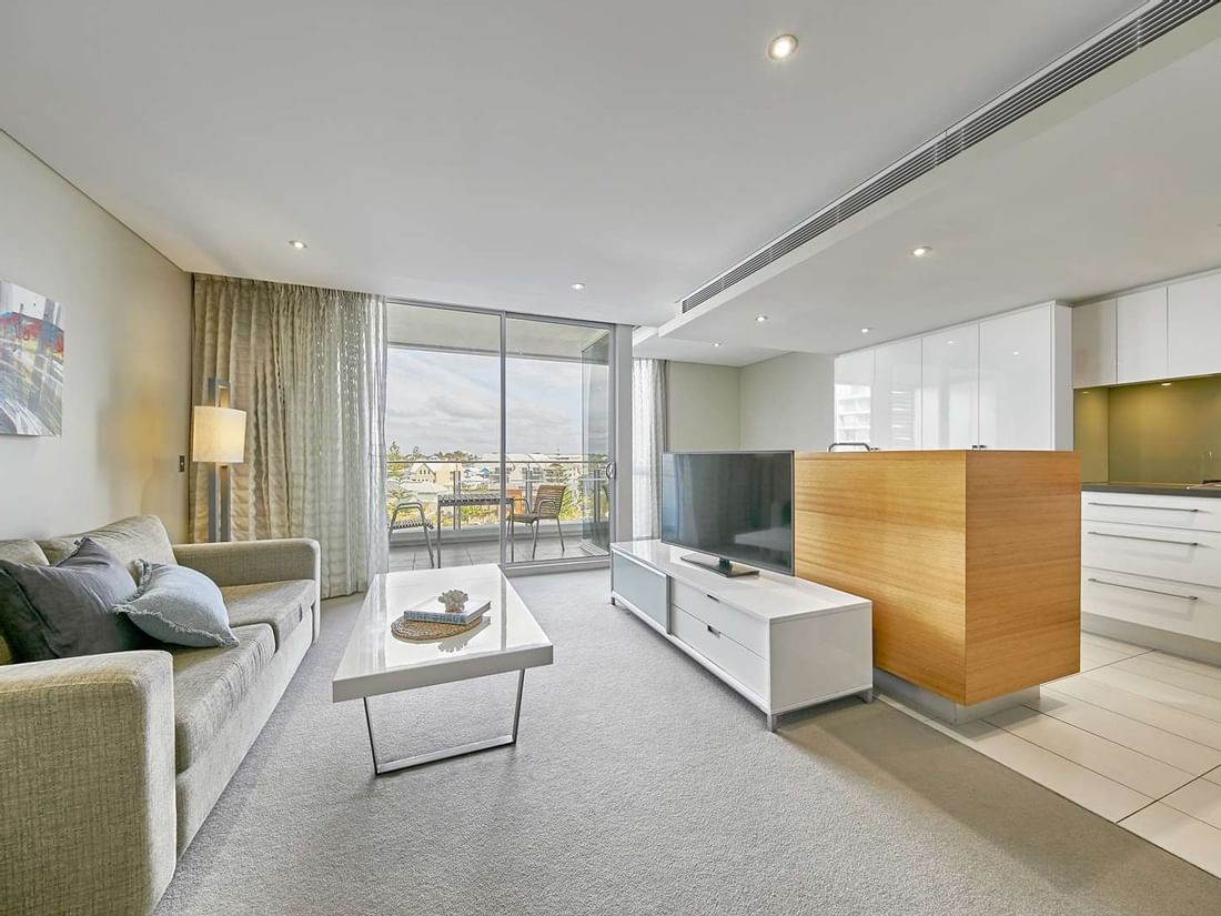 With large, beautifully appointed living space, full kitchen, separate bedroom and your own private furnished balcony, The Sebel’s One Bedroom Apartment is a stylish and contemporary retreat with hotel-style amenities.