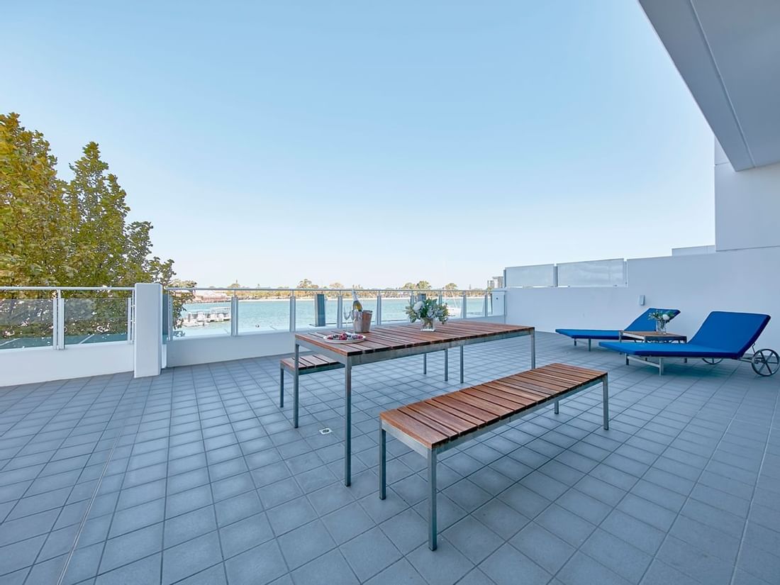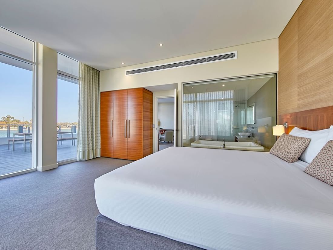 Perfect for honeymoons and celebrating special occasions, your Spa Suite comes with a private, furnished 83sqm balcony that overlooks Mandjar Bay and large separate bedroom and living area.